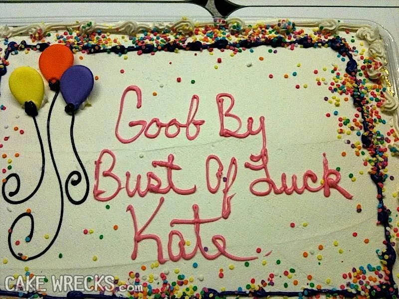 I guess we can't judge this next wreckerator too harshly, since "Bon Voyage" isn't actually English; it's French. And we can't expect bakers to know French, now, can we? OF COURSE NOT. So don't even THINK about laughing. Seriously. It's a simple, honest-to-goodness mistake that ANYONE could easily ma...uh.