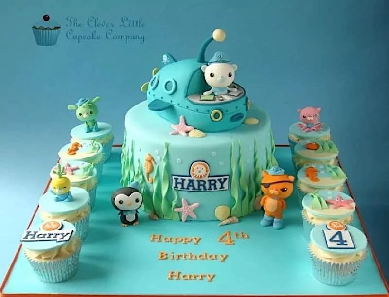 Years ago a reader e-mailed to tell me about this show her kids were watching: it was adorable and kind of steampunk-styled, so she thought of me. The show was called Octonauts, and now that I see this cake I want figurines of all the characters: