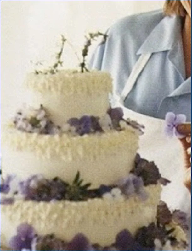 Now, I know I feature a lot of wedding wrecks, and I know a lot of folks will point out that asking for a fondant design recreated in buttercream is asking for disaster, but don't you worry. I'm here to help. After all, this is what Leah D. ordered for HER wedding cake: